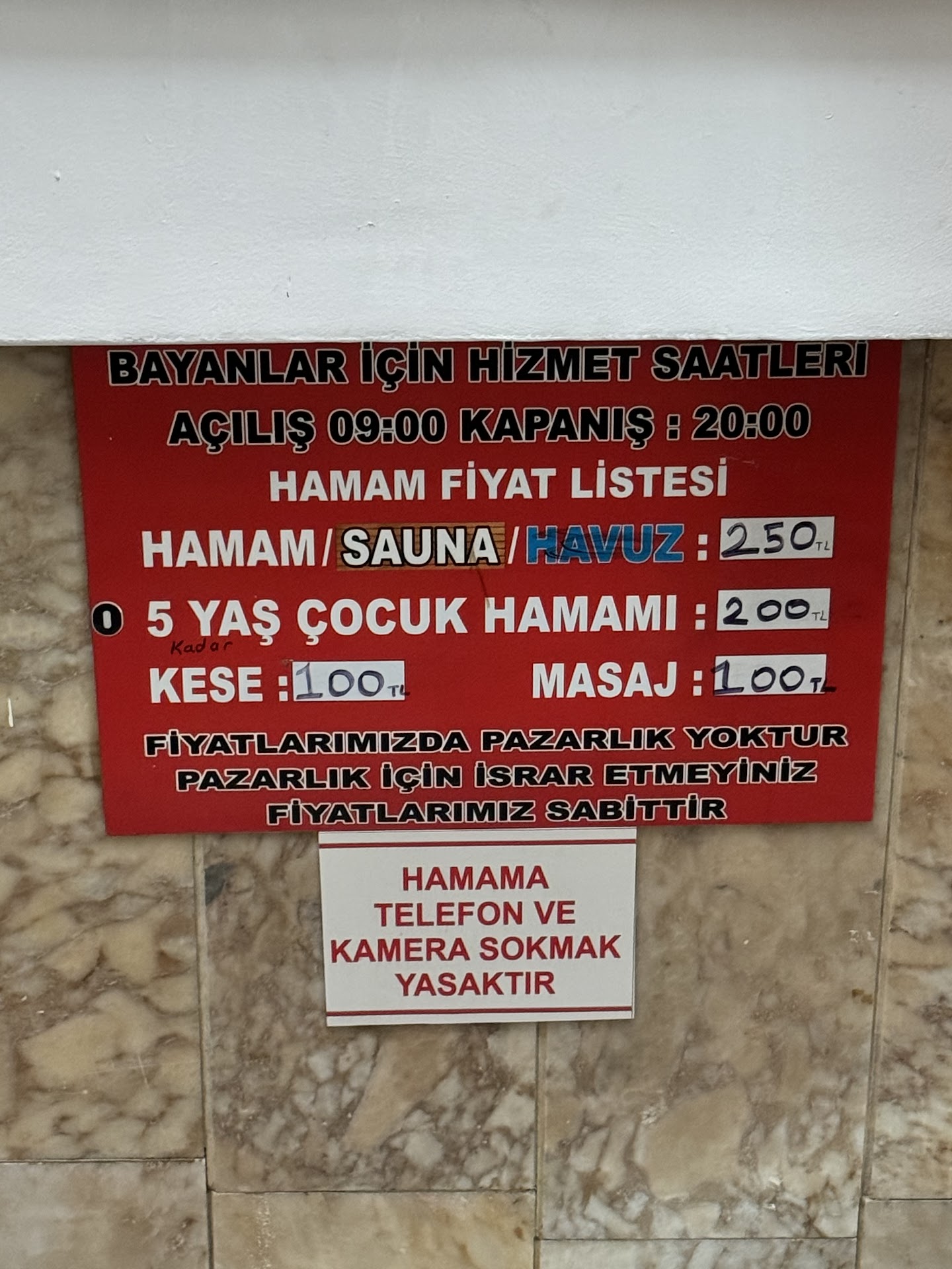 Today was my first time going to a hamam and I had no idea what I was doing. Hopefully this will help you ladies. Google maps will take you to the male hamam. If you go in here by accident, they will show you where the entrance is for the female hamam, just around the corner.