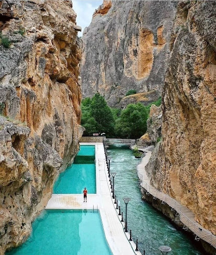 Read moreÇarşamba günü kadınlar günüydü ve bizde orayı deneyimlemek için gittik. Havuz,ortam gayet guzel bi doğa harikası ona asla lafım yok. Fakat neden sadece haftanı bir günü kadınalara ait anlamadım az bi rağbette yoktu yani içerisi gayet kalabalıktı. Bazı saçmalıklardanda bahsedicem içeri telefon vs sokmanız kesinlikle yasak girişte topluyolar tesettürlü insanlarda oldugu içinmis acıkcası bana bu sebep cok sacma geldi kimse kimsenin pesinde degil zaten herkes kendini anı kalsın diye ortamı vs çeker max. Bonesiz havuza almıyolar ama bunu havuz alanına kadar bilmiyosunuz giriştede satıldıgını söylüyolar. Yüzme esnasında bonesiz biseürü insanda gördüm adam akıllı yürütemedikleri kendince uyarladıkları kurallar. Küçük bi kafeteryası var gereksiz pahalı bi kucuk teneke kola 50₺. Giriste sadece telefon yasak dedindi bu bahsettigim sebepten benim yanımda dijital kamera vardı 2010 üretim yılına sahıp. Onla arkadaslarımla bikac fotograf cektim arkada asla insan yok havuzun oldugu kısmı cok uzaktan cektim zaten vintage bi kamera oldugu icin yüzler net bile degildi. Çok bilmiş insanlardan bazıları sıkayet etti ve kanuni hicbir gerekce olmadan fotograflar silindirildi. Çalışanların tavrı, üslupları bi garip zaten.İçerideki insanların yarısından fazlası “sözde kurallara” uymuyor. İlk ve kesinlikle son...