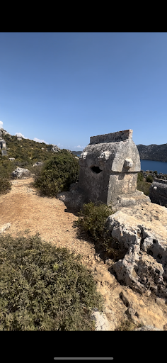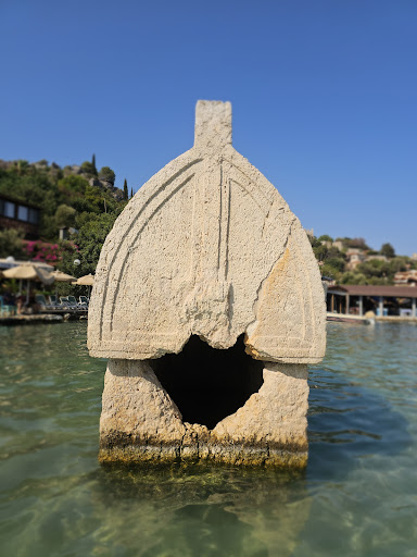 Köy içinden başlayan patika sizi kale eteklerine, ardından köyün en sağ ucundaki denizin içinde yükselen etkileyici lahit mezara kadar götürüyor. Bu tarihi lahit, suyun içinde sessizce geçmişin izlerini taşıyor. Üstelik burada denize girmek de mümkün. Antik bir lahitin hemen yanında yüzmek, hem tuhaf hem de büyüleyici bir deneyim.