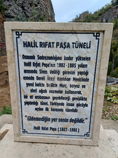 Read moreSivas Valisi Halil Rıfat Paşa'nın "Gidemediğin yer senin değildir" diyerek işçilere verdiği talimat üzerine bir at arabası geçebilecek büyüklükte murç, balyoz ve sivri ağızlı kazmalar kullanılarak 1885 yılında açılan tünel, daha sonraki yıllarda yine aynı yöntemle genişletildi.