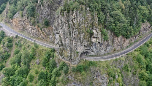 Giresun-Sivas arasındaki ulaşımı sağlayan kara yolunda 6 metre yüksekliği ve 35 metrelik uzunluğuyla halen sağlamlığını koruyan tünelin oyulmuş kaya yapısı...
