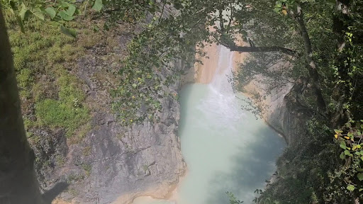 Beautiful blue waterfall the colour is really different. Have to walk a few, small stairs down to view it. There are small terraces few meters apart to view waterfall from a distance. No eateries around and washroom is the dirtiest I have ever seen. No petrol pump around for at least an hour back towards the main road. A lot of tourists going over the barriers and standing in the water for a long time make it difficult to take nice pictures. It's worth going to see as a bucket list item, but 0 facilities around. Make sure to visit on sunny days I have seen pictures from days after it rains or cloudy weather and the colour does not come out looks...