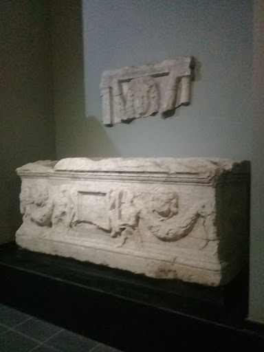 Taş Eserler Sergi Salonu: Salonun büyük bir bölümünde mezar stelleri, lahit ve pişmiş toprak mezar tipleri sergilenmektedir.