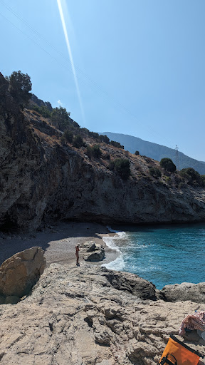Ölüdeniz Plajı’nda yürüyerek on 15 dakikada gelinebilecek bir yer araç ile 5 dakika 3 dört araçlık park yeri var yolun hemen yanında girişi kaçırabilirsiniz biraz dikkatli olunması lazım gelmeye değer mi elbette değer deniz dalgalı güzel bir koy havası veriyor doğayla baş başasınız kafa dinlemeye birebir yer koy küçük bir yer Doğal kayalıkla çevrilmiş gölgelik yapıyor çok sıcak zamanlarda özellikle gelinebilir güneşlenmek için de giriş tarafında kayaların üzerinde güzel yerler var denizden ve kumsaldan ne istediğine bağlı olarak değişen gösterilebilir güzel dalga sesi eşliğinde kafa dinlenecek bir yer girişi yol siperligin altından rahatlıkla geçireceğiniz bir yer aşağıya eğimli ağaçlar arasında patikayı takip ediniz farklı bir güzergah denemeyiniz patika zaten çok belli o direk götürüyor biraz dik olduğundan dolayı dikkatli olunmasında fayda var çıkış da ona göre eğimli olduğundan dolayı biraz sizi yoracaktır ben dinlene dinlene çıktım güzel manzaralık yerler de vardı orada oturupmanzaranın...