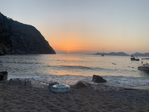 Olumsuz yanları: büyük tekneler her gün yukarıdaki saatlerde yüzlerce insanı sahile getiriyor. Bunların bir kısmı kan, ter ve gözyaşı içinde gelip “ I ❤️kelebekler” yazısı önünde foto çektirip koşa koşa yine tekneye gidiyor. Dünyanın bence sayılı koylarından birine gelip mayosunu bile ıslatmadan gidiyor ilginç bir güruh. Bir kısmı da gelip denize giriyor sonra çocuğunun kirli bezini 10 metre ötedeki çöp yerine sahile bırakıyor. Sizin büyüteceğiniz o çocuğun bu memlekete faydası olacağını pek düşünmüyorum. Bir kısmı (5-7 bin TL arasında diye internet fiyatını gördüğüm) taksi tekne ile gelip elinde Migros poşeti ile güneşin altında salatalık peynir yiyip, çöpünü de ortaya bırakıp gidiyor müthiş bir vizyonsuzluk. Yahu belli ki paran var, git balık restaurantta otur yemeğini ye içkini yudumla çok pahalı değil güzel kardeşim. Çöpünü de atma ortalığa, migros poşetine koy 25 adım yürü her yerde mavi çöp kutuları var içine at- bu kadar. Yapamıyorsan gelme ne olur. Böyle dedim diye ortalık çöp dolu gibi düşünmeyin. Çalışanlar sürekli ufak tefek çöpleri atıyor. Bu kadar gelen gidene göre gayet temiz bir yer. Tek tük olunca göze batıyor.