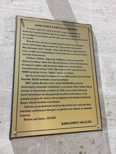 Read moreDevlet Hastanesi yakınındadır. 1903 tarihinde inşa edilmiştir. Avrupai tarzda konak mimarisi ile geleneksel tarzda Urfa evi mimarisinin kaynaştığı bir özelliğe sahip olan ve oldukça geniş bir alana yayılan konak, haremlik ve selamlık bölümlerindeki düzgün kesme taş yapılardan meydana gelmiştir. Duvarlarında o günlerden kalan top ve mermi izlerini görebilmek mümkündür. 2005 Yılında Şanlıurfa Valiliği tarafından onarımı gerçekleştirilmiş ve 11 Nisan 2009 yılında "Şanlıurfa Kurtuluş Müzesi" olarak hizmete sunulmuştur. Kurtuluş müzesinde Şanlıurfa'nın düşman işgalinde kullanılan silahlar araç gereçler sergilenmektedir. Şanlıurfa'nın düşman işgalinden kurtuluş hareketini başlatan 12 kişinin mumyalanmış resim heykelleri...