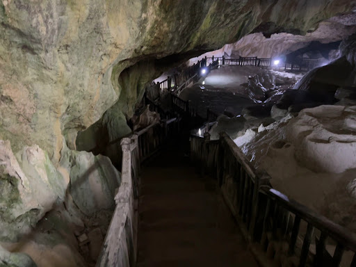 Read moreUnderground cave with flowing water over the limestone travertine deposits gives a unique, somewhat eerie feel. There is an elevated pathway to walk in a loop (descending steps followed by ascending to reach back at the top). The water flowing over the pathway is bound to get your shoes wet, so remove them at the top and go bear footed as we did or wear flip flops.
