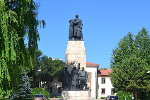 Read moreAnıt iki kaideden oluşuyor. Erzincan. Depremlerin yıktığı yerle bir ettiği ettiği yeniden kurulan bir şehir. Kentte çok katlı yapılar yok. 3-4 katlı binaların yapımına izin veriliyor. Erzincan'da 27 Aralık 1939'da, 32.372 kişinin ölümü ve bütün kentin yerle bir olmasına neden olan depremi o dönemin "Milli şef"i İsmet İnönü'ye sarılan depremzede kadın, çocuk ve kentin yeniden yapımını anlatan alttaki figürleri bir kadın ve iki erkek (kadın vatan anayı, erkeklerden biri kentin yeniden kurulmasında çalışan işçiyi diğer erkek de Erzincanlıyı temsil ediyor) ile 1939 büyük depremini temsil ediyorl. Heykeltraş Ratip Aşir Acudoğlu tarafından yapılan heykel Erzincan depreminin simgesi olarak 1944...