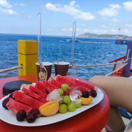 Read moreGeçen hafta içi ailemle gittik. Ulaşım merkezden motorla getiriyorlar, hafta içi kişi başı 200 tl. Resimlerde görüldüğü üzere plaj sahile paralel,çoğu şezlong deniz görür şekilde. Eleman sayısı yeterliydi. Devamlı bir arzumuz olup olmadığı soruldu. İlgili ve sıcak kanlıydı görevliler. Öğlen harika bir manzarası olan lokantasında yemeğimizi yedik. Fiyat ve lezzet uygundu. Hamburger tabağı 150 tl idi. Tavuk ızgara 200 tl. Çöp şiş 300 tl. Bize servis yapan arkadaş çok kibardı. Duş, WC, Şezlonglar, Soyunma kabinleri temizdi.Gün boyu çalan müzik çok iyiydi. Karpuz tabağı istedik güzel bir tabak geldi tavsiye ederim , 100 tl idi. Gelelim denize. Şimdi yorumlarda deniz taşlık diyen var,kumluk diyen var, yüzemedik diyen var, yüzdük güzeldi diyen var. Şunu yazabilirim hepsi doğru esasında:) Plajın üstten çekilmiş resmine bakarsanız sahil kısmının farklı farklı yapıda olduğunu görürsünüz. Biz iskeleden ki galiba 4 tane vardı girdik. Direkt derin su da yüzdük. Çok da güzeldi deniz. Yorum yapanların ayağına taş batıyorsa neden iskeleden girmediklerini pek anlamış değilim. Anladığım kadarıyla adalarda ki plajlarda rüzgarın yönüne ve saatine göre denizin temizliği değişiyor. Burada da aynı şekilde oldu. Biz öğlen yemek yerken görevliler gelen yosunları toplamak için devamlı gayret gösteriyorlardı. Buraya tekrar gelir misiniz diye sorarsanız gelirim. Zaten haftaya geleceğim :) Ancak şu noktada ilgilileri uyarmak isterim. Denizi temizlerken bir ağ gerip tek seferde temizleme yapılsa daha verimli olur. Elinizdeki kepçeler ile çok kolay olmuyor. Yorum yapıyoruz puan kırmak bu işin doğasında var:) Ama tarafsız ve adaletli olursam kıracak bir şey bulamadım. Benim puanım...