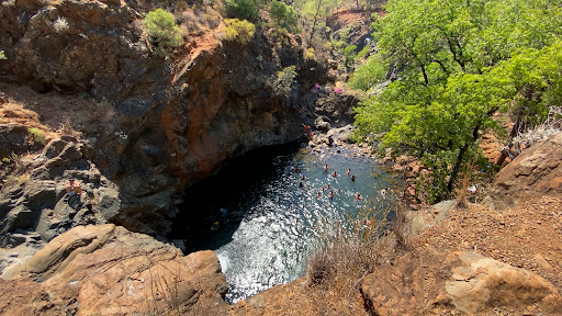 We visited on a mid week morning. There was no one else around, and it was a pleasant walk up the side of the river to the waterfall and natural pool. We had a swim- although it was suitably chilled!