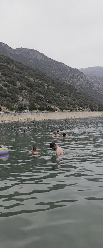 Lots of families, lots of kids, babies, so it gets noisy in the shallow end. If you don't like kids, this is not for you. Water is excellent, shallow for about 20m, and then drops off. They have a floating platform for shallow diving. The view is excellent as usual for Kas. There is a walking path around and up to a park area, another restaurant, more WCs. Parking is available and plentiful. And free.