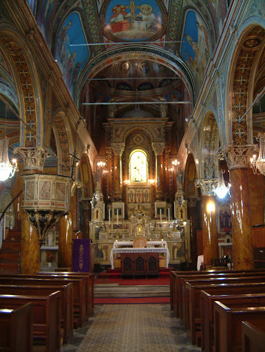pazar hariç, her gün saat 15:00-17:00 saatleri arasında ziyarete açık olan, içi oldukça süslü, hilton'un neredeyse dibinde konuşlanmış izmir'in en eski katolik kilisesi. kapıyı sanırım sürekli kapalı tutuyorlar, ancak zile basıp niyetinizi söyledikten sonra giriş yapabiliyorsunuz. içeride kimlik kontrolü ve üst araması yapan polislerin karşılamasından sonra merdivenle çam ağaçlarıyla donatella yapılmış küçükçe bir iç avluya iniyor ve oradaki bir kapıdan saklı ve rengarenk bir dünyaya adım atıyorsunuz. eksantrik.