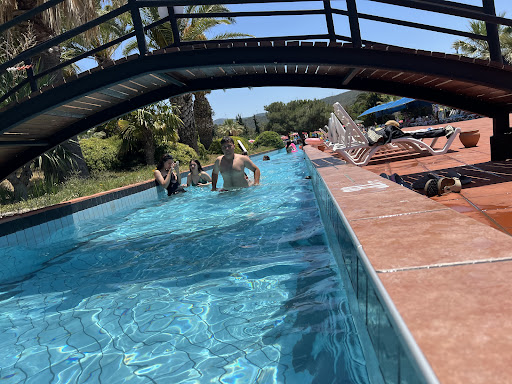 Araç ile giderseniz kendisine ait ücretsiz oto parkı mevcut ağaç altı gölgeye denk getirin;) Biz gitmeden sitesinden fiyatlara bakmıştık 3 kişilik bir aile 2y+1ç (6yaş) 3150 fiyat çıkmıştı dedik belli olmaz bir şey çıkar oradan giriş yaparken alırız dedik 3400 olarak ödedik kesin belli ise girişiniz tarihi sitesinden almanızda fayda var ve girişte siteden alanların ayrı masada bekleyen bir çalışan tarafından biletleri veriliyor ve beklemeden giriş yapıyor. Biz ise gişelere geçerek 5 dk bile beklemeden giriş yaptık pazar günü olmasına rağmen. Girdiğiniz gibi emanet dolapları soyunma odaları wc karşılıyor. Emanet dolabından yararlanmak için de bir ücret ödemiyorsunuz. (Girdikten sonra yeme içme + raftingti sanırım +dolphinpark + fotoğraf harici hiç bir şeye ücret ödemiyorsunuz, bu belirtiklerimi ayrı ücretleri hakkında telefon ettiğinizde bilgi için size yardımcı olacaklardır) Yeme içme bölümlerinden yararlanmak için kart almanız gerekiyor bunu orada söylemiyorlar bir şey almaya gittiğinizde fark ediyorsunuz, kartıda giriş yaptığınız gişerlerden sırtı size dönük çalışanlardan alıyorsunuz. Kart yüklemesini kredi kartı ve nakit yapıyorlar ( nakit yükleme yaparsanız çıkışta kalan bakiyeyi rahatlıkla alabileceğimizi, k.kart ile yükleme yaparsanız ihtiyacınız olduğu kadar yükleme yapmamız gerektiğini gişede ki değil ama bir başka çalışan tarafından bilgilendirildik.) Merdivenlerden çıktığımız gibi sizi havuzlar ve şezlonglar karşılıyor ihtiyacınıza göre yer seçmenizde fayda var. örnek bizim çocuğumuz olduğu için çocuklar için uygun olan kaydırakların yanında gölge bir yer seçtik. Kendi eğlenceniz için ise yerinizden uzaklaşmanız gerekiyor hali ile kaydıraklar da sıra oluyor yoğunluğa ve kaydırağın eğlencesine göre değişkenlik gösteriyor. Ve kesinlikle deniz ayakkabısı ile girin ya da patiği ile. Gelelim yemeklere içeride çeşitler gayet normal, sadece yemeklerin yapıldığı yerler farklı hamburger pizza bir yerde köfte salata bir başka yerde gibi bu aslında sorun değil yoğunluğu azaltmak için güzel düşünülmüş fiyatlar kişiye göre değişir, yazlık yerlerde haberlerde duyduğumuz fiyatlarla karşılaştırdığımızda bize makul geldi, en azında aldığınız bir şey fiyatını hak ediyor. Şimdi çocuk için gidince günlerde de pazar olunca dolhinpark(yunus gösterisi) için yararlanırız sandık bir yerden ses duyduk kapalı diye meğerse gösteri 14 de başlıyor 14 den önce de özel yunuslarla yüzme programları varmış burada bizim hatamız oldu siz dikkat edersiniz artık. Temizliğe gelince wcleri tertemiz havuzlarda bir şey görmedik ama sığ çocuk havuzunda yaprak vs gibi şeyler gördük. Çalışanlar içinde kime ne sorsak bir şekilde bizi geri çevirme diler bilgi verdiler.