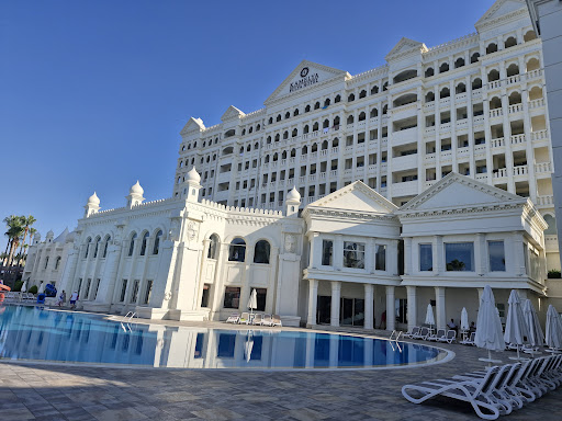 Read moreI will share my opinion from the perspective of someone who is not a veteran of all inclusive board types (meaning that people who are, might have higher or different expectations). Rooms: From my point of view the rooms were alright. You could tell that the hotel is a bit worn and not new, but it wasn't bad either. Some elements in the bathroom such as faucets were quite worn out. A smart TV could have helped keep our kid distracted for 30-60 minutes a day while we showered etc, but the room came with an oldschool TV, unfortunately. Resort: The resort is pretty big, like a small, lively village. The alleys and green spaces are well maintained. Cleanliness: Definitely not a strong point. While the alleys and gardens of the resort were clean and maintained, the pool area and beach were somewhat disgusting (especially the pool where the water slides are). You could see cleaning personnel daily, but they didn't do a thorough cleaning of the place as there was still garbage left after them. In my opinion, the pool areas should be pressure washed 1-2 times a week, with the sunbeds removed as that's where most of the dirt and garbage is. On the other hand, cleanliness should be a shared responsibility of hosts and guests alike, and unfortunately the guests were also lacking in this department. Regarding cleanliness of rooms, the only reason why we had a clean room was because we are a clean family, otherwise housekeeping kept coming at around 14:00 when we were in the room for a short one hour nap, so we often had the 'do not disturb' sign on the door handle. Food: I enjoyed the food, from my point of view it was sufficiently diverse. The breakfast was the most underwhelming out of the three main servings but still ok. The grills were particularly good with some very soft meats being served (turkey tenderloin in particular). Personnel: The first level employees, such as waiters (both from the Yula Restaurant but also Turkuaz - honorable mention to Tolga here, the waiter from Turkuaz), lifeguards etc were nice people. Above this level, you could start feeling a sense of unjustified arrogance. I often had the feeling that the bar personnel (Mojito bar, Nazar) were annoyed by me asking for drinks (although we consumed very little during our stay there, compared to the piles of glasses that others accumulated). My main reason for annoyment was the SPA personnel, that kept pushing for paid services (which were not really cheap). After refusing a few times, I eventually said yes to a massage just to get rid of this guy (I think his name was David? but not sure though). The massage: It was offered by a nice lady, quite a good massage, full body, also hot stones were used, face massage with a lovely smelling cream. However, a fair price would have been maximum 50 euros, not the 70 that I paid. Turkey: I've been to Turkey twice before as a young kid, but this was my first time as an adult. Prior to my arrival I was really curious to see how I would perceive the country after 24 years of not seeing it. And this was my biggest disappointment. The whole country feels like a giant tourist trap, where various people try to scam and over-charge you at every corner. One day we went to the Antalya Aquarium (visit organized by DerTour). Before arriving, we stopped (not by our desire) at a jewel store and afterwards a fur and leather clothing store where me and my wife had one of the most awkward experiences trying to dodge aggressive sellers. The main problem was not that we are against shopping, but we were not interested in this particular niche stores (we don't wear jewels, we don't wear furs and leather clothes). Also, few people communicate in English (you can only communicate in keywords, sometimes not even that). As a result, there's almost no cultural exchange between you, the tourist, and the natives. Bottom line, I do not see myself coming to Turkey ever again. By comparison, Greece is ten levels above in terms of the overall vibe and experience...