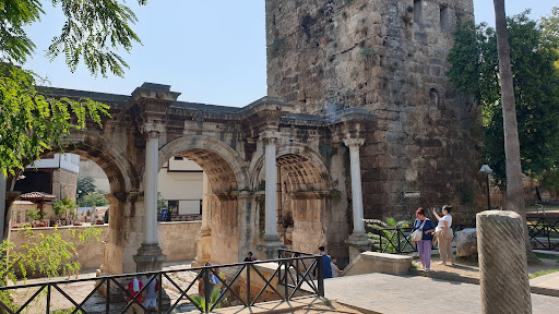 Hadrian's Gate (Turkish: Üçkapılar, meaning "The Three Gates") is a memorial gate, which was built in the name of the Roman emperor Hadrian, who visited the city in 130 CE. It was later incorporated in the walls that surround the city and harbor, of which it is the only remaining entrance gate today.