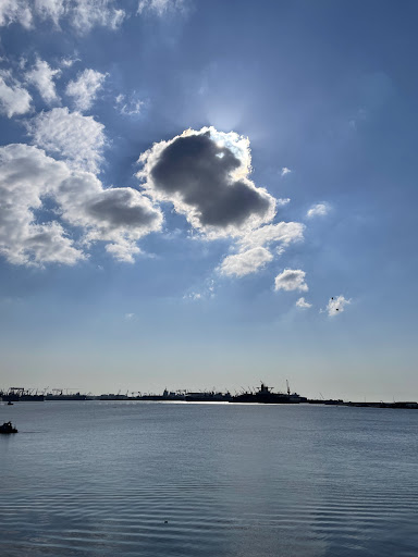 Personally, I wouldn't walk through the water barefoot. Being it's off a shipyard, the water has an odor and is dirty. Those on the sand, leave their trash behind. Such a lack of...