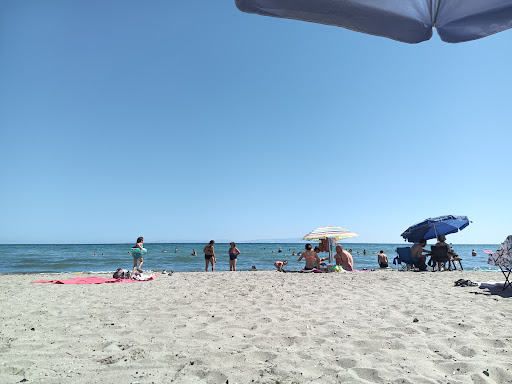 Read moreПлажа е сравнително добър пясъка. Ивицата е тясна и не много дълга. Бетонните зидове на оградите на къщите помагат на края на деня за сянката. Един ден видях. трактор с гребен и багер да го почистват. Във водата има малко камъни. Много неравномерно дъно. При вятър има вълни и водата е мътна и с водорасли. Няма душ, тоалетна, вода и съблекалня. Спасител също. За съжаление има канал или река. Което значи вливане на мръсотия в него. Има има къде да намериш колата да паркираш...