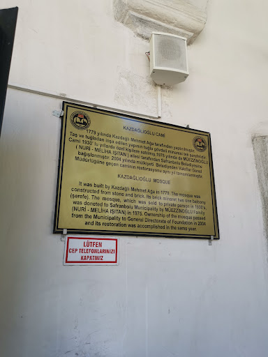 Read moreSafranbolu'nun ileri gelenlerinden Kazdağlıoğlu diye bilinen Mehmet ağa tarafından yaptırılan, 18.yy Osmanlı eseri bir mabet. 1930 yılında özele satılmış, bereket ki 1975'e tekrar belediyeye bağışlanmış bir hayırsever tarafından. Eski Çarşının girişinde, Cinci hamamın hemen yanında. Tek şerefeli, tuğla örülü bir minaresi ile bir şadırvanı var. 3 kemerle ayrılmış son cemaat yeri 2 bölmeli, içerisi de beyaz badanalı, küçük bir cami.