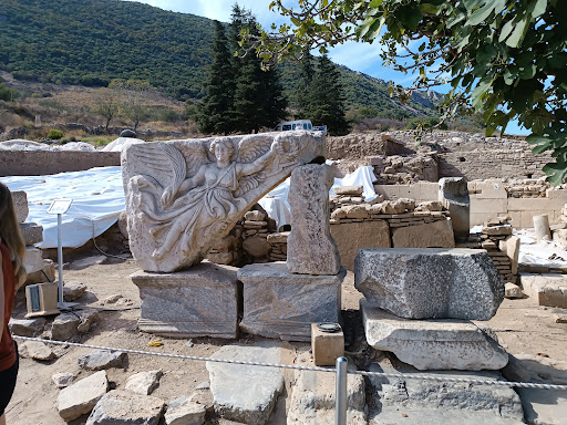 Read moreThis stone relief represents Nike, the Greek goddess of victory. The stories say that it was this statue, or more precisely the goddess's vests, that inspired a young graphic designer student to design in 1971 the now world famous Nike brand logo. It is said that at the time she was paid something like $35 for this side job, but that she was later rewarded with an diamond ring with the logo and a good quantity of Nike shares. This is not the original location of the relief in Ephesus, but rather a more prominent location to celebrate its quality...