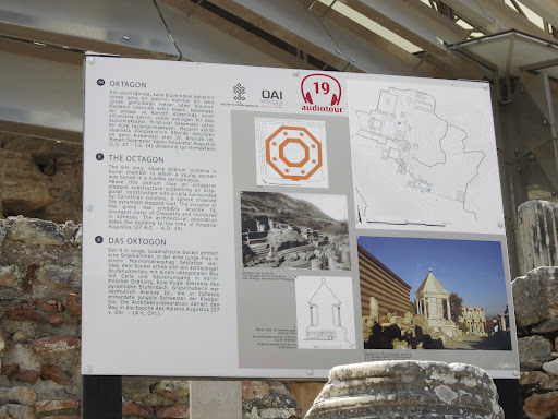 Read more9 m uzunluğunda, kare biçimindeki kaidenin içinde genç bir kadının mermer bir lahit içinde gömüldüğü mezar odası bulunur. Kaidenin üzerinde sekiz köşeli, basamaklı bir altyapı ve Korinth düzeninde etrafı sütunlarla çevrili, sekizgen bir yapı bulunmaktaydı. Piramidal bssamaklı çatıyı bir küre taçlandır maktaydı. Mezarın sahibi olasılıkla Kleopatra'nın Efes'de öldürülen en genç kız kardeşi olan IV. Arsinoë idi. Mimari bezemeler yapıyı İmparator Augustus dönemine...