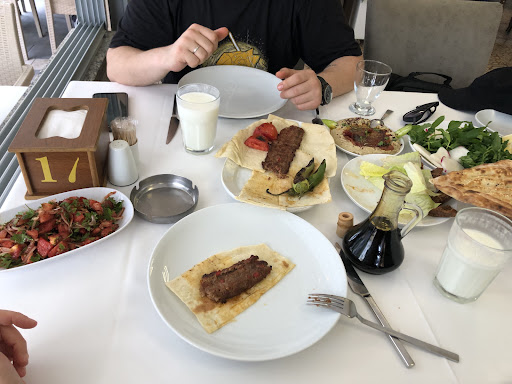 Lahmacununuz var mı soruma evet var cevabını alinca masaya oturduk. Menude lahmacun yoktu? sordum yapıyoruz dediler. Sonra bir porsiyonda 5 tane olduğunu ögrenince ebadinı sordum bana fındık lahmacunu tarif ettiler. Dedim ki bana 2 adet normal boy yapar mısınız tamam dediler. Gelen lahmacun belli ki normal boydu ancak pide gibi dilimledikleri icin içine maydanoz sogan koyup yemek mümkün olmadı. En kötüsü de lahmacunda kıyma yoktu. Bol salçalı bir karışımı yoğun bir şekilde ekmeğe sürüp pişirmişler. Abartısız söylüyorum şu ana kadar yediğim en kötü 'lahmacun'du. Tabi buna lahmacun diyebilirsek. Aç olduğum için ancak birini yemeye tahammul ettim. Eşimin yediği şiş de gelen et de yumuşaktı ancak çok kuruydu. Humus ve salata güzeldi ancak humus yiyecek olsam yandaki lübnan/suriye mutfagı yapan restorani tercih ederdim. Keşke lahmacunlarinın iyi olmadıgını soyleyip başka birsey önerselerdi. Ama belli ki bunun farkında değiller. Büyuk...