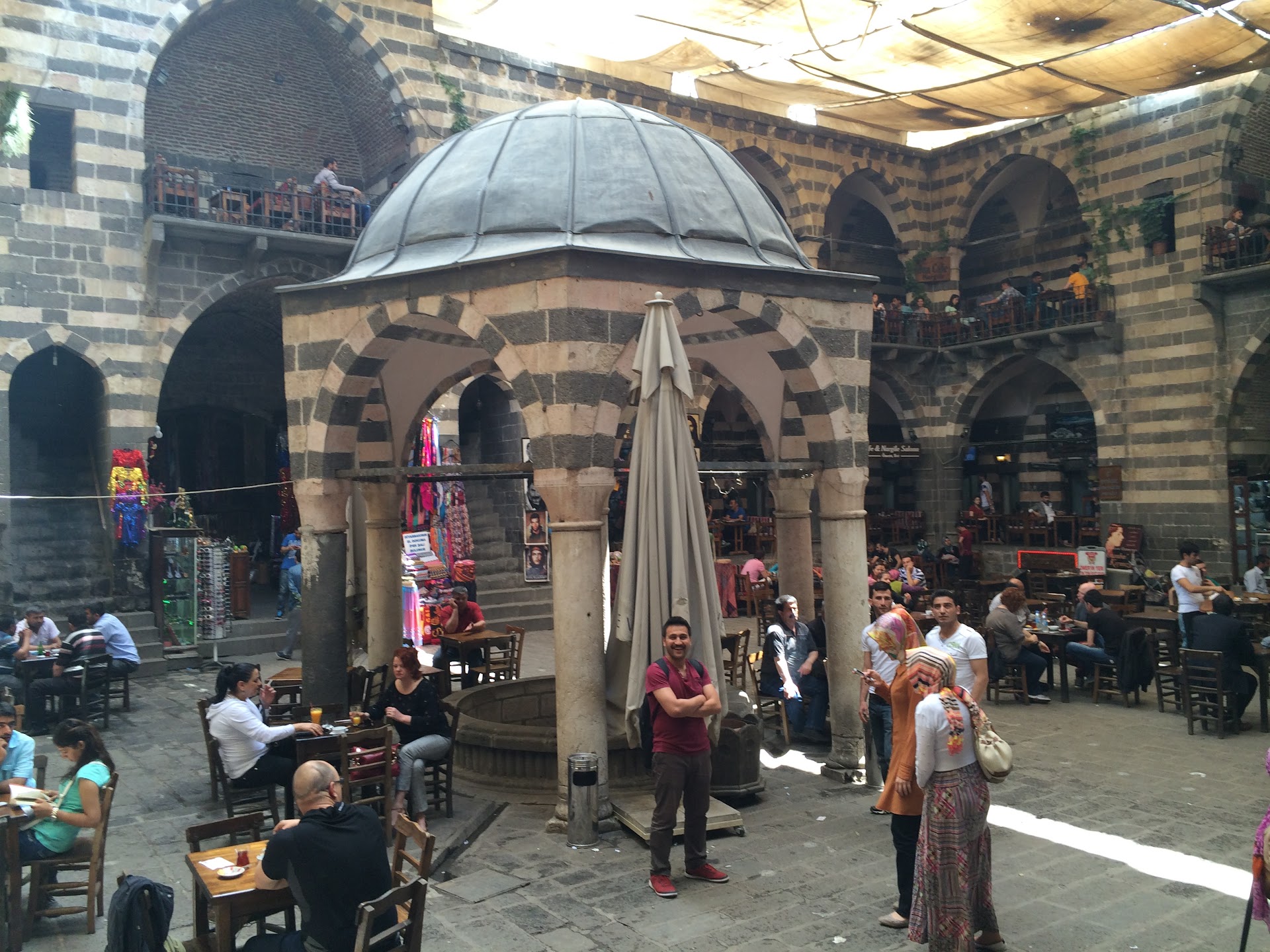Read moreDiyarbakır. Tarihi, kültürü, çeşitliliği bakımından gördüğüm en zengin şehirlerden biri. Hem en güzeli. Hem de en çirkini. Çirkinlik meselesini herkes biliyor. Ah o terör yok mu. Muhteşem bir kenti bitiriyor. Türkiyenin en güzel şehri olma potansiyeline sahipken bu durum hep potansiyel olarak kaliyor. Hemen her yerinden tarih, kültür fışkırıyor. Hemen her yer derken sadece merkezden bahsetmiyorum. Diyarbakır sınırlarındaki her karış topraktan bahsediyorum. Belki de bu yüzdendir hep karışıklığı. Kusura bakmayın içimi döktüm biraz ama ne yapayım. İçimde bir yaradır bu bende. Ben o iki yıllık barış zamanında bir fırsat buldum da gezdim. Bu hendek olayları daha olmamıştı. 3 günlük bir geziydi. Çok yerine gidemedim. Süre yetmedi. Kimi şehirler vardır 1 günde biter. Diyarbakırın sadece merkezi 1 haftanızı yer. Gelelim Hasan Paşa Hanı' na. Burası diyarbakırın en çok bilinen yerlerinden. Her ne kadar Osmanlı zamanından kalsa da kare ve keskin yapısı bana selçuklu yapılarını andırıyor. Yüksek giriş, yüksek tavan, keskin hatlar, heybetli ve daha askeri bir hava. Diyarbakırdaki yapıların genelinde bulunan siyahi taşlarla örülü. 3 katlı büyük bir yer. Ortasında geniş bir avlu var. Orada daha çok hediyelikçiler falan bulunuyor. 2. ve 3. katında ise kafe ve restorantlar var. Diyarbakıra dışarıdan geldiyseniz kahvaltınızı mutlaka burada yapın. Kahvaltısı çok iyi, lezzetli ve çok zengin. Serpme kahvaltının adını veriyor. 5 çeşit peynir vardı. Çayı sınırsız ve soruyorlardı. Siyah çay mı olsun yoksa normal çay mı diye. Doğu ve güney doğuda daha çok siyah çay dedikleri kaçak çay içerler. Onun demi daha iyidir. Biraz da acıdır. Herkes sevmez, içemez. İşte sucuk, bal, kaymak, tereyağ, ezme ama en güzeli de kavurmalı sahanda yumurta. Onu deneyin. Kahvaltının da resmini koydum. Yeri ise merkezde surların orda. Ulu...
