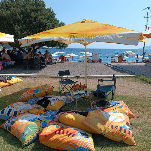 Read moreSon zamanda yaygın olan,deniz varsa müzik de vardır,ama son ses müzik, anlayışının tersine sadece restoran alaninda çalan, ses seviyesi oldukça yerinde olan bir müzik var.Sessizlikle serin bir denizi ozleyenler icin ideal.Bu sene defalarca gittiğim bir mekan.Denizi sevenler ama güneşlenmeyi sevmeyenler icinde gölge alternatifi olan (ağac altı oturma mekanları)sabah erken gidildiginde ancak oturulabilir ama yine de bu alternatifin olmasi güzel.Şemsiye sezlong fiyatı Izmir'de Urla Seferihisar ve Çeşme ile karşılaştırılamaz seviyede iyi ve makul.Yemekleri cafe tarzi olduğu icin cok cesit beklememek gerek.Bir plaj icin gayet makul fiyatlar ve yemekler var.Biz bir gün kalabalik grup olarak aksam yemegimizi de orada yiyip ayrildik.Tüm gün şemsiye sezlong,arada soyledigimiz icecekler ve aperatif yiyecekler, aksam yemegi dahil 6 kisi icin 750 lira odeme yaptik.Bu donemde plajlarda bu fiyati bulmak mumkun degil.Temiz, servisi gencler yapiyor ve gayet de ilgililer.Tak diye yaninizda biten bir servis yok ama hız acisindan sizi rahatsiz edecek bir servis de değil.Tuvaletlere para odendiğini yazan bir kisi olmuş yorumlarda.Defalarca gittim tuvalete para odemedim.Böyle bir sistemi yok.Yanlış bir yer ile karistiriyorlar sanirim.Tuvaletler ücretsiz.Otoparkı geniş.Tuvalet sayisi kalabalik olunca yetersiz kaliyor ama diger beachlerde gordugumuz temizlikten daha iyi bir temizligi oldugu kesin.Tuvalet sayisini çogaltarak bir nebze rahatlatabilirler.Biz ailecek her gittigimizde memnun kaldik.Deniz sakinlik ve huzur isteyen tatilciler icin oldukça iyi...