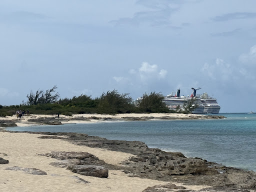 My wife and I walked from the ship to this beach that she found prior to leaving on the cruise. With several breaks to look at other sights on the way over it took us about an hour to casually walk over from the cruise ships. To walk back without distractions is about 30 minutes. The only people on the beach were the occasional golf cart that pulled up for about 10 minutes to take pictures or a quick dip and they would leave. They would spend their time at the entrance. We walked further up the beach. It was very isolated and peaceful. We brought our own snorkels and saw fish of all different colors just feet from the shoreline. It was a great...