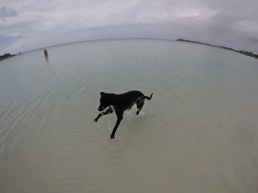 The water was as calm & as clear as it gets. We waded out 50-100ft, with the water never getting above waist high. We saw multiple sting rays. During our first visit, an extremely nice stray dog decided to hang out with us. The next day, he cheated on us, so I found a rooster to be my friend.