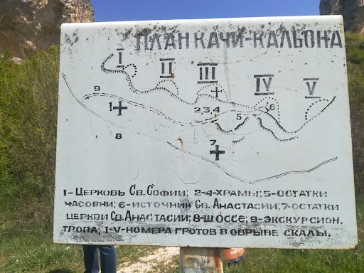 Качи-кальон - удивительное место. Здесь попадаешь в атмосферу тишины, покоя, душевного равновесия. На территории находится храм, выдолбленный в скале. Внутри византийское убранство переплетается с православными мотивами. К потолку подвешены причудливой формы лампадки, обшитые бисером. Подле стен стоят стулья с выложенеыми на них христианскими заповедями. Храм действующий, в нем проходят богослужения в 8 утра. Это так называемое место силы в Крыму. Также, на территории находится церковная лавка, в которой, начиная с мая можно приобрести очень вкусный квас. Далее, необходимо пройти к ступеням из автомобильных покрышек и спуститься до камня с указателем, потом налево по тропинке вдоль горной гряды. Дойдя до монументальной созданной природой арки открываешь для себя неаероятные виды. Здесь получаются отличные фотографии. Добраться сюда можно тремя способами по земле: 1. Через заповедник от пещерного города Чуфут-Кале - на пешком, либо на джипе (стоимость от 2.5 тыс. руб. За машину). 2. На легковой машине, проехав почти полностью Бахчисарай со стороны Симферополя и свернув по указателю Качи-Кальон налево. Далее, едем по дороге до таблички скит святой Анастасии и налево по проселочной дороге до монастыря. 3. Как во втором случае, только приезжаем дальше по асфальтированной дороге прямо, никуда не поворачивая, оставляем слева источник и паркуемся на небольшой площадке правее дороги (Ее трудно проехать - в дневное время там стоят автобусы и Уазики). Переходим дорогу и поднимаемся по тропе из автомобильных покрышек наверх, к храму. Горная гряда и тропинка на неё при этом остаются справа. Обувь и одежда: - лучше отдать предпочтение спортивному костюму и кроссовкам. Всем отличного...