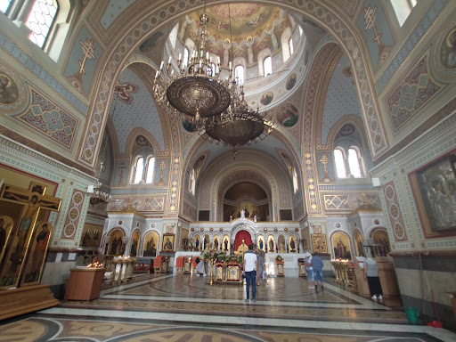 Read moreХорошее место. Историческое. Собор восстановлен при Украине. В верхней части также заново произведены росписи, в нижней - нет. Несмотря на то, что в храме предусмотрена система пожарной сигнализации и оповещения в храме не выдерживаются нормы по пожарной безопасности: открыт только один лестничный спуск, да и тот перегорожен церковной лавкой - случись беда - много людей подавится при эвакуации, так как эвакуационный проход составляет чуть больше метра. Также на спуске расположены экспозиционные стенды. Второй лестничный спуск используется как подсобка, поэтому постоянно перекрыт. При восстановлении собора напрочь не предусмотрена система вентиляции и кондиционирования воздуха. Сделано как было ещё при последнем Всероссийском царе. Поэтому летом в верхнем храме находиться не возможно - жара и духота неимоверная. А зимой холодно, так как электрические конвекционные обогреватели не работают. Стоят кондеи с наружной северной стороны, но видно только для конфорка духовенства в алтаре. Туалета при соборе нет. Даже биотуалета. Коляски поставить некуда. Инвалидам в верхний храм просто не подняться. Печалька, одним словом. Нашего брата только беда...