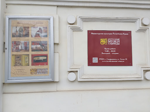 Read moreМне кажется с моего давнего детства краеведческий музей ничем не отличается по экспозиции этому центральному музею Тавриды. Без экскурсии обойти весь музей можно за полчаса (билет 120 руб): первый зал всяких древностей времён мамонтов второй зал вся история от греков до турков (часть экспонатов почему то не вернулось из Голландии) третий зал о быте Крымской губернии в 18-19 веках четвертый зал, посвящённый войне (большей частью, оформленный фотокопиями газет, приказов, плакатов, реальных артефактов не много). После 35 батареи, Аджимушкая эта коллекция из десятка винтовок/пистолетов и нескольких медалей не интересна маленький зал, посвящённый временам ссср, смотрительницы - бабули очень доброжелательны, но смотреть по большому счёту нечего Для общего развития стоит посетить, думаю можно привлечь...