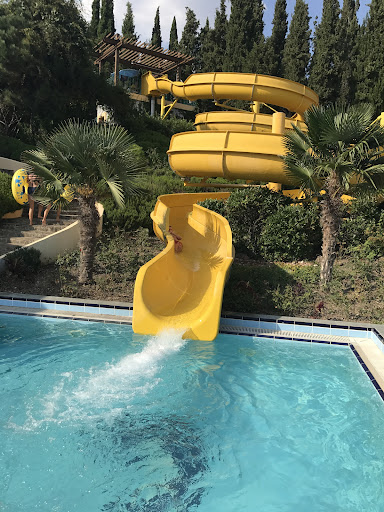 Из плюсов: не опасные горки, если детьми - самое то, куча бассейнов, в том числе волновой, с шарко, джакузи и т.п. Есть бассейны и для малышей, Потрясающий вид, Внизу, на набережной, масса кафешек где можно перекусить