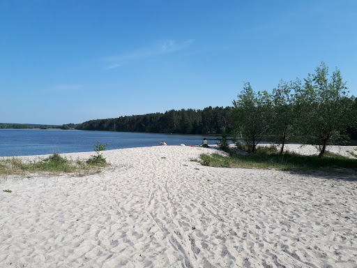 Read moreДовольно много песка, заход в воду песчаный. Увеличение глубины достаточно резкое, но есть и где детям побарахтаться. Чисто, но вода немного зеленая, хотя и без водорослей. Есть беседки в аренду, есть большая часть соснового леса возле воды, можно остановиться с палатками. Жарят шашлыки прямо на пляже, с краю подальше от воды. Туалет уличный, грязный, пользоваться не возможно, но он есть. Раздивалка есть. Магазинчиков практически нет, но воду купить можно. Иногда носят пиво и кукурузу по пляжу. В целом места больше чем в Пуще-Водице, но и людей многовато. Заезд к лесу через шлагбаум, платный, много машин запарковуют соседние улочки, место поближе искать нужно долго. С пляжа вид на сосновый лес,...