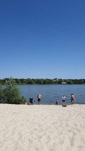 Був там вчора (вперше в житті) з сімєю. Ну доїхали швидко - від столиці відносно не далеко. Приїхали десь о 13.00 людей була тьма, машин дуже багато, паркувався аж далі...біля лісу, заїхати прямо до пляжу можна, проте машин пребагато. Пісок так нагрівся - ніби він кварцовий і призначений для виготовлення екранів до ТВ, тому лише в тапочках можливе пересування було. Загалом мені все сподобалось - але ще опишу дрібниці. Стан - гарний, без сміття і бруду. Дно метрів 5 пісок - далі водорості і мул, хто не вірить походіть. Озеро - все дуже мілке - серед озера можна стати на дно відпочити (дно не приємне). Люди різні - з дітьми і без, в татуюваннях і без, рижі і лисі. Публіка постійно змінюється, поки я там був (до 17,00) біля мене змінилось 4 рядна людей. Вода (через спеку) зелена і брудна, але без запаху. Коли я вдома зняв шорти - все було чорне... Є прокат човнів (каяків) і для дітей якісь місцеві євреї зробили спуск з гори на кругах по плівці з водою - в озеро. Пяних немає, діти всі були виховані. Конфліктів ніяких немає. Тому рекомендую - як варіант (але не на постійній основі) для відпочинку сімєю з дітьми. Також візьміть парасолю для пляжу - бо...