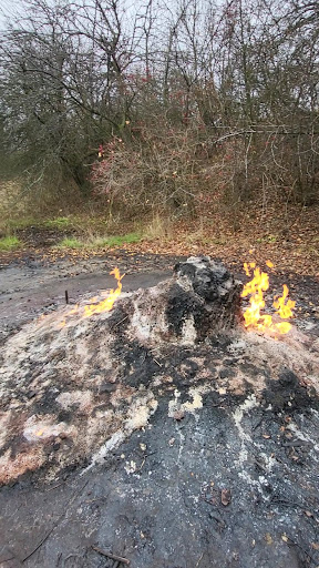 Справді унікальна геологічна пам'ятка. Пейзаж тут дуже незвичний. Є декілька осередків, де булькає нафта, і один головний вулкан, де інтенсивно горить вогонь. За 4 км до вулкану закінчується асфальтована дорога (біля відділення Укрпошти), далі дорога відверто погана, і це при тому, що значна її частина ще проходить через село. Ганьба за це місцевій владі. В болотяну погоду я б не рекомендувала сюди їхати, хіба якщо маєте авто підвищеної прохідності. Останні 300 метрів краще пройти пішки (не лише через поганий доїзд, а просто щоб не знищувати це місце ще більше). Навколо вулкану є сміття, також всі чомусь хочуть запхати палку в ті озерця з нафтою, щоб виміряти глибину, і залишають її там, в результаті воно все захаращене палками... Дуже і дуже шкода, що така неймовірно цікава і направду унікальна пам'ятка природи (яка офіційно має природоохоронний статус) знаходиться в такому стані, і більшості (а особливо місцевій владі) до того немає абсолютно ніякого діла. Отже, якщо ви знаєте чого очікувати, цікавитесь природою, геологією та незвичними локаціями в нашій країні - то їхати сюди однозначно варто. А якщо ви очікуєте побачити облагороджену територію, і вулкан як в Ісландії,...