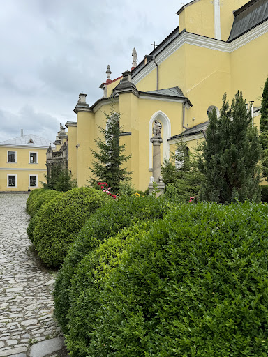 В 1644 р. єпископ Михайло Дзялинський переносить головний вівтар на схід, прибудовує зі східної сторони до костелу видовжений презбітерій (місце для вівтаря та духовенства), рівний за шириною середній наві. У той самий час з вулиці за головним вівтарем розміщується «Сад Гетсиманський» – розп'яття, по обидва боки від якого стоять Божа Матір і святий апостол Йоан.