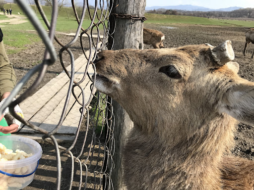 Самка виношує маля сім місяців, а після народження оленятко вже через три дні втікає до лісу. До мами приходить лише поїсти, і постійно на одне й теж місце. Через кілька місяців воно вже їсть корми, а зовсім дорослим стає вже у чотири роки. Літом тварини випасаються, а взимку оленів годують зерном і сіном. Послухавши цікаву екскурсію про рідкісних тварин та погодувавши їх, бажаючі можуть приміряти оленячі роги,що прикріплених до огорожі і зробити...