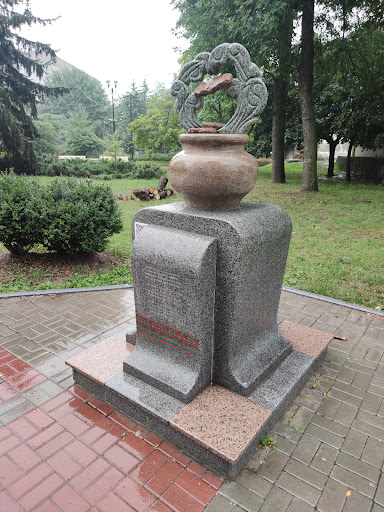 Пам'ятник розташований в міському парку ім. Островського. Являє собою корзину з дерунами, встановлену на постаменті з сірого і червоного граніту, видобутого в Коростенському районі. Автор пам'ятника - коростенський художник В. Козиренко.