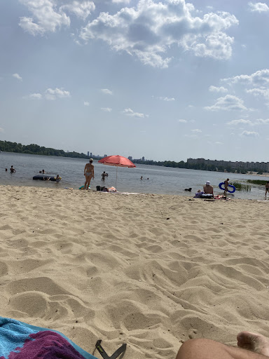 Read moreОтличный пляж, масса мест в округе для шашлыков. С берега можно увидеть яхт клуб, а также красивые парусные яхты :) Место для живущих на Оболони - одно из самых лучших и дом рядом и вроде бы природа :) Удобно, что подъехать на машине можно практически к пляжу, но и никаких проблем нет оставить ее на обочине у дороги. Сам пляж достаточно большой, имеются несколько площадок для волейбола (но сетку лучше прихватить с собой (не помню точно, есть ли она там)). В будние дни здесь народу практически всегда мало, про выходной день...