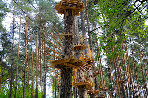 Read moreБыли сегодня компанией (25-30 лет). Ехали полазить в веревочном парке. Но пока по жаре добрались - запарились. Потом посмотрели на эти треки - и не решились сразу. Прошли дальше к озеру - а там еще один веревочный парк. Но у них в основном троллеи - прицепился к тросу - и скользишь от дерева к дереву. Решились на трассу 1+2 - сначала на простой попробовали, потом на более длинной. Подходит для людей без физической подготовки и даже маленьких деток (только с родителями), перед нами семья шла, один малой 10 лет, другой - года 4. Не страшно (кроме первого прыжка для тех, кто еще такое не пробовал) и длинной шатающейся лестницы, после которой я сказала "хорошо, что в основном троллеи, а не самой лазить). К страховочному тросу ты закреплен на всей длине маршрута. Всем понравилось, хотя впечатлений хватит на ближайший год и я не скоро захочу повторить. А вот троллей через Днепр попробую. Зацепился -...