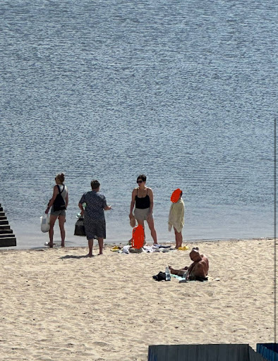 ПС: хлопчик намагався пояснити мамі і, певно, сестрі, що собака маленька і добра, але їй було байдуже. Замість того, щоб познайомити дівчинку (яка награно кричала у воді і теж, можливо, комусь заважала) з твариною, вона обрала невміння жити у соціумі.