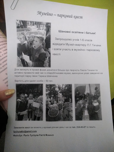 Сьогодні учні 3-а класу відвідали Музей-квартиру П. Г. Тичини. Це була не просто цікава екскурсія: діти мали незвичайний інтегрований урок з читання,малювання та трохи музики. А також взяли участь в мистецькому проекті “Я малюю вірш Тичини”. Подорожуючи кімнатами музею, діти знайомилися з біографією поета та інтер’єром квартири, слухали вірші та декламували самі, асоціювали їх з образами, що виринали у їх думках. Зіграли на музичних інструментах поета. Після екскурсії діти у спеціальних альбомах малювали ілюстрації до віршів, що їм сподобалися найбільше. Рекомендую для шкільних екскурсій. Дітям було дуже цікаво, виявили справжній інтерес до побаченого та почутого, було багато цікавих та неочікуваних запитань, тож у екскурсоводів була нагода продемонструвати всі...