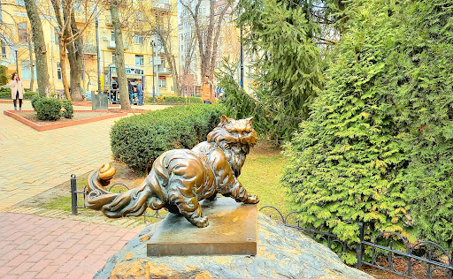 Read moreВ середине 1990-х у Маргариты Сичкарь, киевского ресторатора и директора ресторана «Пантагрюэль», который находится возле Золотых Ворот, появилась идея завести при ресторане кота, который должен был стать особенностью заведения.[1] Таким образом в ресторане появился серый персидский кот Пантюша[2], снискавший чрезвычайную популярность среди посетителей заведения и жителей города. Животное погибло во время пожара, который произошёл в ресторане. После этого постоянные посетители начали перечислять деньги на ремонт и восстановление ресторана, за эти же деньги было решено установить памятник и коту.[3]