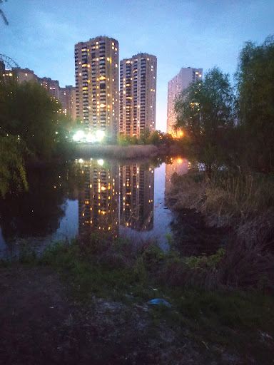 One of several lakes that survived between multilevel block buildings in the Pozniaky region. The pond is really tiny but still very picturesque. There is also a treed zone by it and a small sandy beach for sunbathing and volleyball. Different species of ducks can be seen all year around. Many people do fishing and make picnics here. Unfortunately, that causes more and more trash scattered around. In winter, the pond is totally frozen and sometimes people even prepare it for ice hockey...