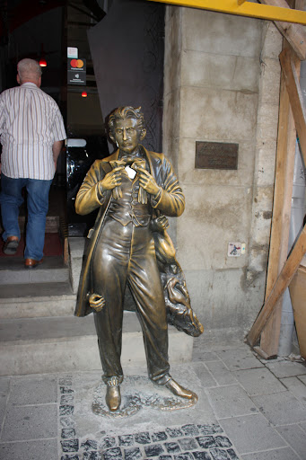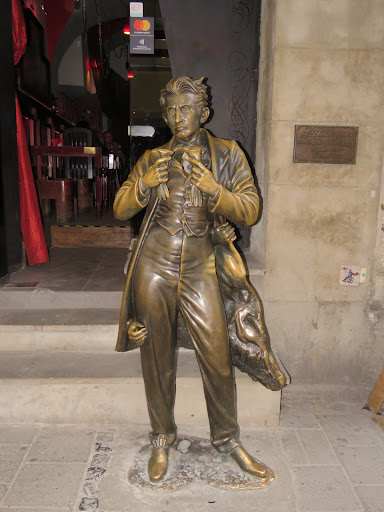 Read moreЛеопольд фон Захер-Мазох - родился в Лемберге, нынешнем Львове, в 1836 г. в семье полицейского, умер в 1895 году во Франкфурте-на Майне. Скандально известный австрийским писатель, от имени которого произошел термин «мазохизм». Памятник открыт в апреле 2008 г. во Львове — статуя высотой 1,7 м. Бронзовое изваяния Мазоха в натуральный рост —170 см — скрывает ряд пикантных «сюрпризов». На груди статуи вмонтировано увеличительное стекло, через которое можно рассмотреть эротические картинки (очевидно, авторы решили, что дети и подростки до этих картинок не дотянутся). В левый карман статуи можно просунуть руку и … А дальше варианты различаются, однако исподнего на писателе нет))) Весьма оригинальный способ увековечить память о знаменитом человеке, когда-то жившем и бродившем по улицам...