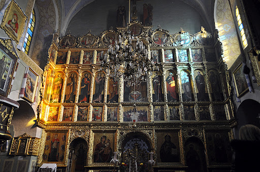 Read moreОдин з небагатьох княжих храмів, що залишився у місті. Початок будівництва археологи датують ХІІІ ст. Храм перебудований істотно після пожежі 1623 року. На стіні є пямятна таблиця про завершення будови 15 серпня 1644 року. Кілька разів пошкоджена, церква була реставрована у 1870, 1886 і 1908 роках, поєднує в собі елементи готики і пізнього ренесансу. У 1908 році під час перебудови за проектом Міхала Лужецького, замість шатрового завершення церква отримала струнку баню із ліхтарем і наріжними вежечками.Під час цієї перебудови на вежі планувалось встановлення годинника. Цей задум однак не реалізовано. Близько 1873–1876 років біля церкви була збудована нова плебанія у «аркадовому стилі» за проектом Юліуша Гохберґера. Нині це будинок № 2 по вулиці Гайдамацькій. У 1996–1999 роках поруч збудована дзвіниця за проектом Володимира Швеця. Найбільша цінність церкви — шедевр львівських малярів і різьбарів середини XVI або першої половини XVII століття — п'ятирядний ренесансовий іконостас із доданим 1870 року шостим рядом (усього 70 ікон) та бароковими царськими вратами, завершеними Розп'яттям із фігурами по боках. Найпишніша частина іконостасу — портал із гарним архівольтом — іконою Христа-архієрея, по обох боках ряд апостолів на позолочених із витисненим орнаментом дошках. На найвищому ряді фігури Святих православної церкви у прозорорізьблених медальйонових рамах. Найнижчий (доданий) ряд пензля Антонія Качмарського — фігури Святих Кирила і Мефодія, Ольги і Володимира, Івана Золотоустого і Святого Миколая. Цінні також ікони на вівтарях...