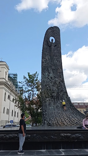 "Хвиля Національного Відродження" як історична пам'ятка Остаточним моментом відкриття пам'ятника Шевченку у Львові можна вважати рік, коли завершили роботу на усіма деталями 12-метрової стели за постаттю Кобзаря. Кропітка робота тривала аж до 1996 року і вражає кількістю деталей, що стосуються історії України від доби Київської Русі до кінця ХХ століття. На передній стороні "Хвилі" можна знайти фігури завойовників України (турецького султана, польського короля, російського царського офіцера та католицького монаха) та її захисників (козаків, Петра Сагайдачного, фігуру Оранти, Івана Мазепи та Богдана Хмельницького), а також видатних керівників Держави та представників культури й духовенства: Княгиню Ольгу, Ярослава Мудрого, Володимира Великого, Роксолану, Григорія Сковороду, Маркіяна Шашкевича, Якова Головацького та Івана Котляревського тощо.На зворотній стороні пам'ятки розміщені моменти з історії України ХХ століття: створення УНР, Голодомор, Друга світова війна, Чорнобильська катастрофа, поміж якими проходить символічна тріщина, яка ніби відриває частину українців від майбутнього. Знизу можна помітити обличчя тих, хто загинув за справедливість та незалежність України, а зверху - відомих діячів, що будували Українську Державу - Михайла Драгоманова, Лесю Українку, Івана Франка, Василя Стефаника, Ольгу Кобилянську, Андрея Шептицького, Василя...