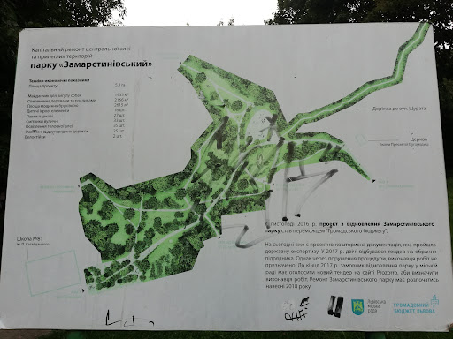A bit of green zone next to a residential area. Nice place to walk. Seems that the park was recently renovated, but not yet all the paths are done. There are few benches to sit, trash beens around. Many are people walking there with dogs. Also at night there are lots of street lights. Looks...