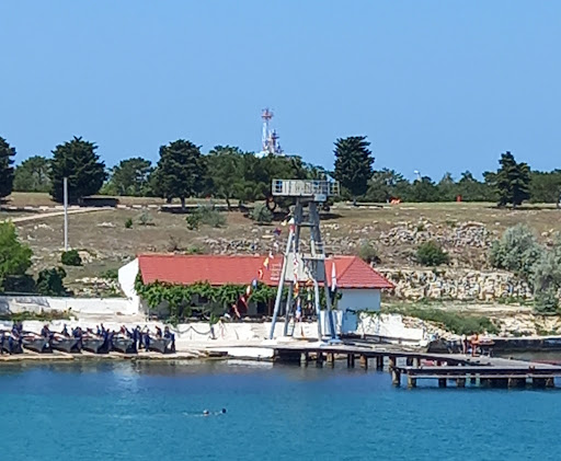 Это второй пляж на котором я побывала в Севастополе. Пляж небольшой. Но выигрывает у пляжа Аквамарин . Раздевалки и душевые выглядят так,как будто это платный пляж. Хорошо оборудованный туалет. Имеется раздевалка и спуск в море для колясочников. Реечный навес. Лежаки 200 рублей,но их практически никто не берет. Функционирует спасательный пост.Детки постарше прыгают с пирса и поднимаются по оборудованной лестнице( взрослому прыгать не рекомендую,мелко) .Есть несколько торговых точек. Пляж около 50 метров по побережью. Наполовину галька и песок. Вход в море галечный ,но метров через 5-10 очень мелкий песочек. Спуск в море очень пологий. Нужно отойти метров 30 чтоб взрослому небольшого роста было по плечи. Минус лишь в отдаленности от автобусных маршрутов и в большом количестве людей. Кстати! Херсонесом можно полюбоваться прям...